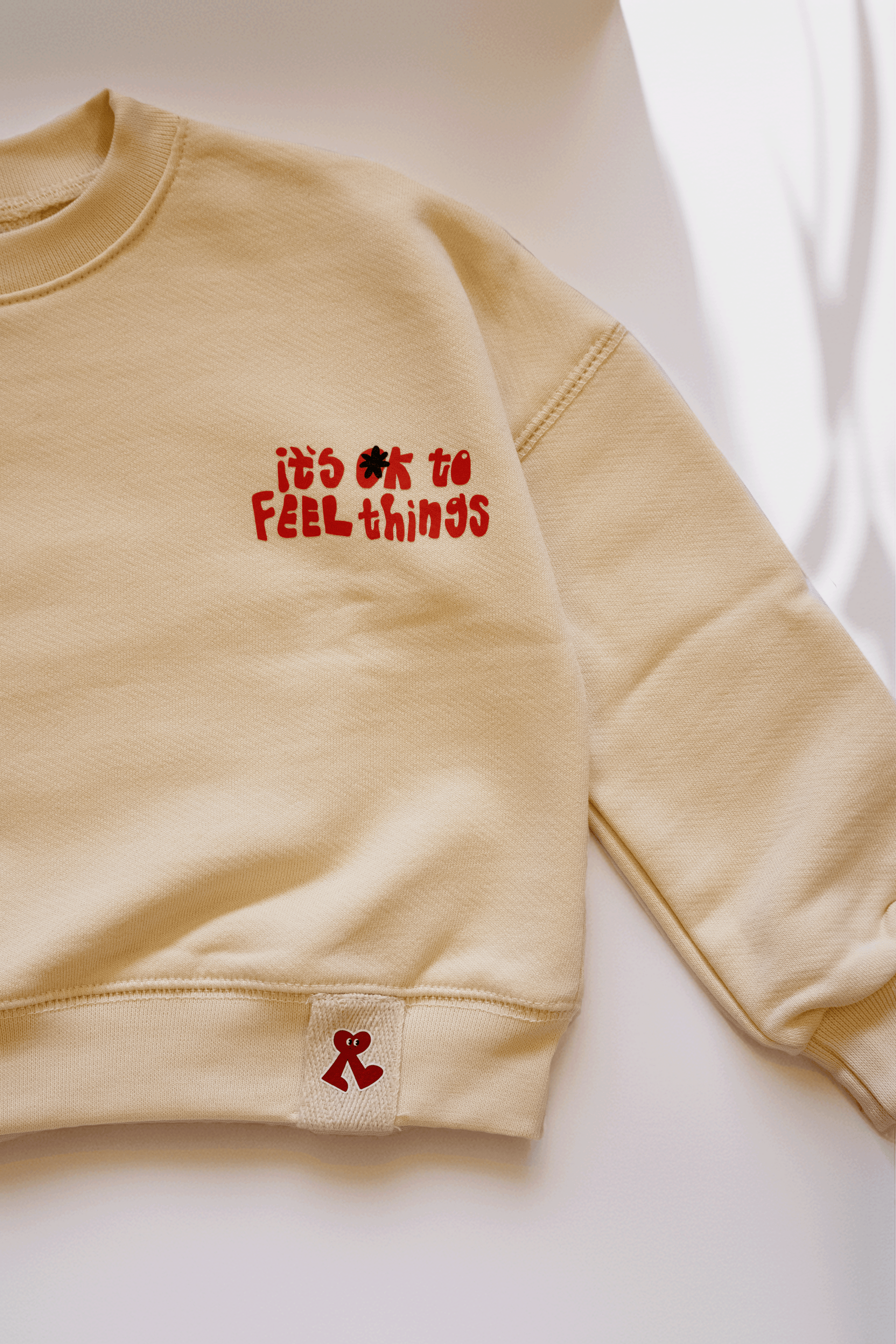 A soft, unisex sweatshirt made from 100% cotton French terry for everyday comfort. Designed with an oversized fit, it’s easy to layer, gentle on the skin, and perfect for cooler days. Finished with the uplifting “It’s OK to Feel Things” print, it brings warmth, comfort, and a little reminder kids love to wear.