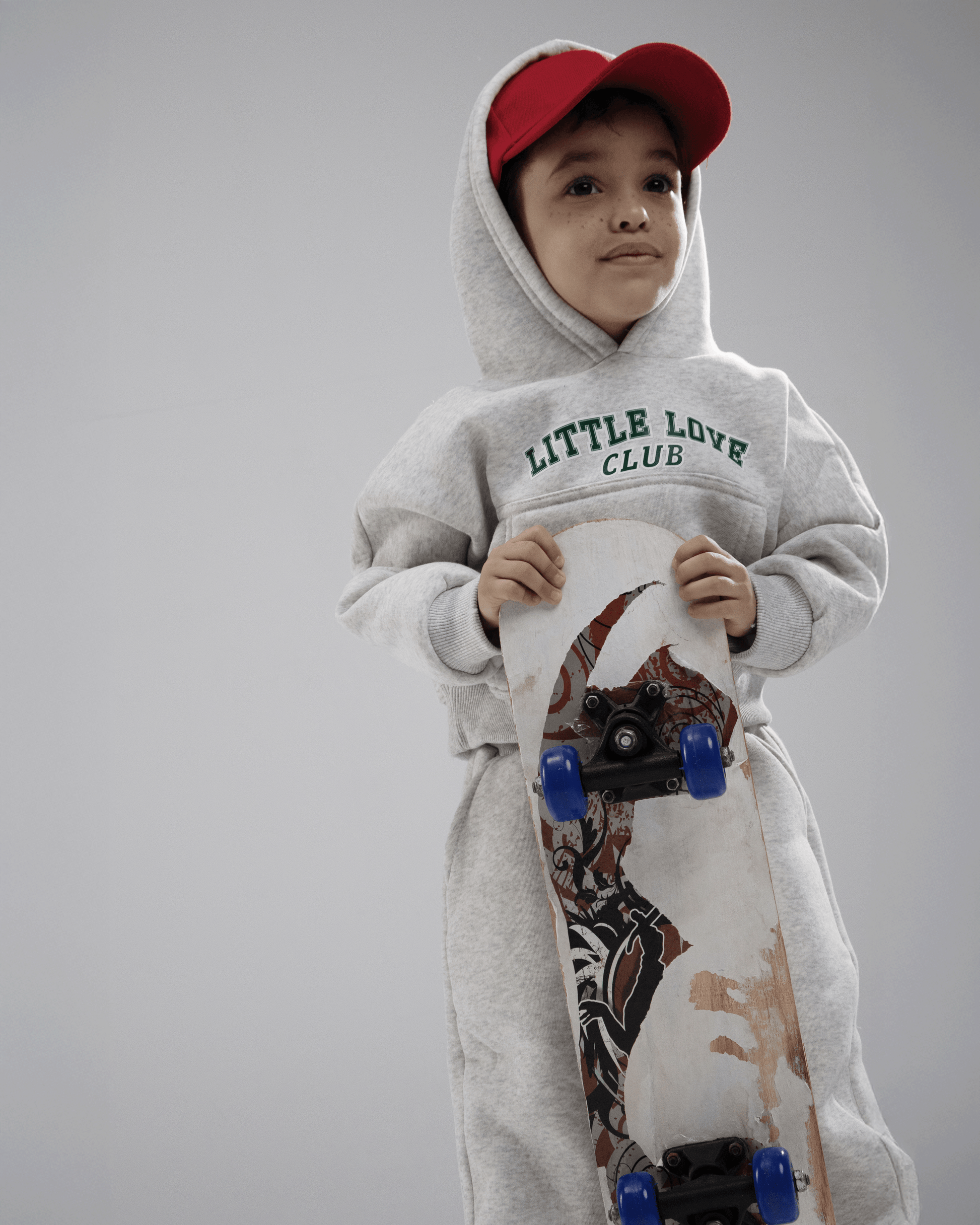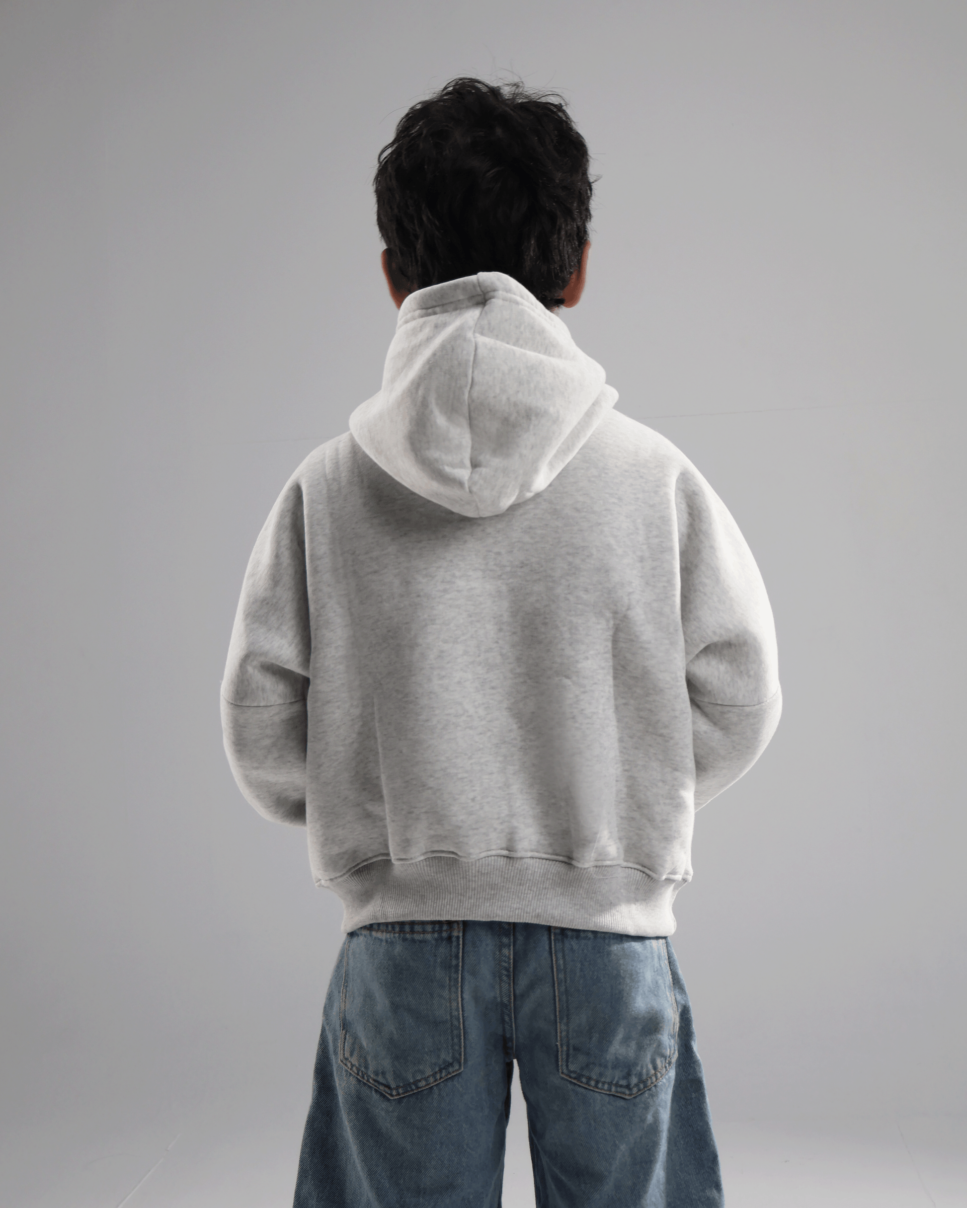 A heavyweight, ultra-comfy unisex hoodie with a boxy oversized fit made for everyday wear. Crafted with soft inner fleece, it keeps kids warm, cozy, and comfortable through cooler days. The unisex grey design is easy to layer and gives plenty of room to move and grow.