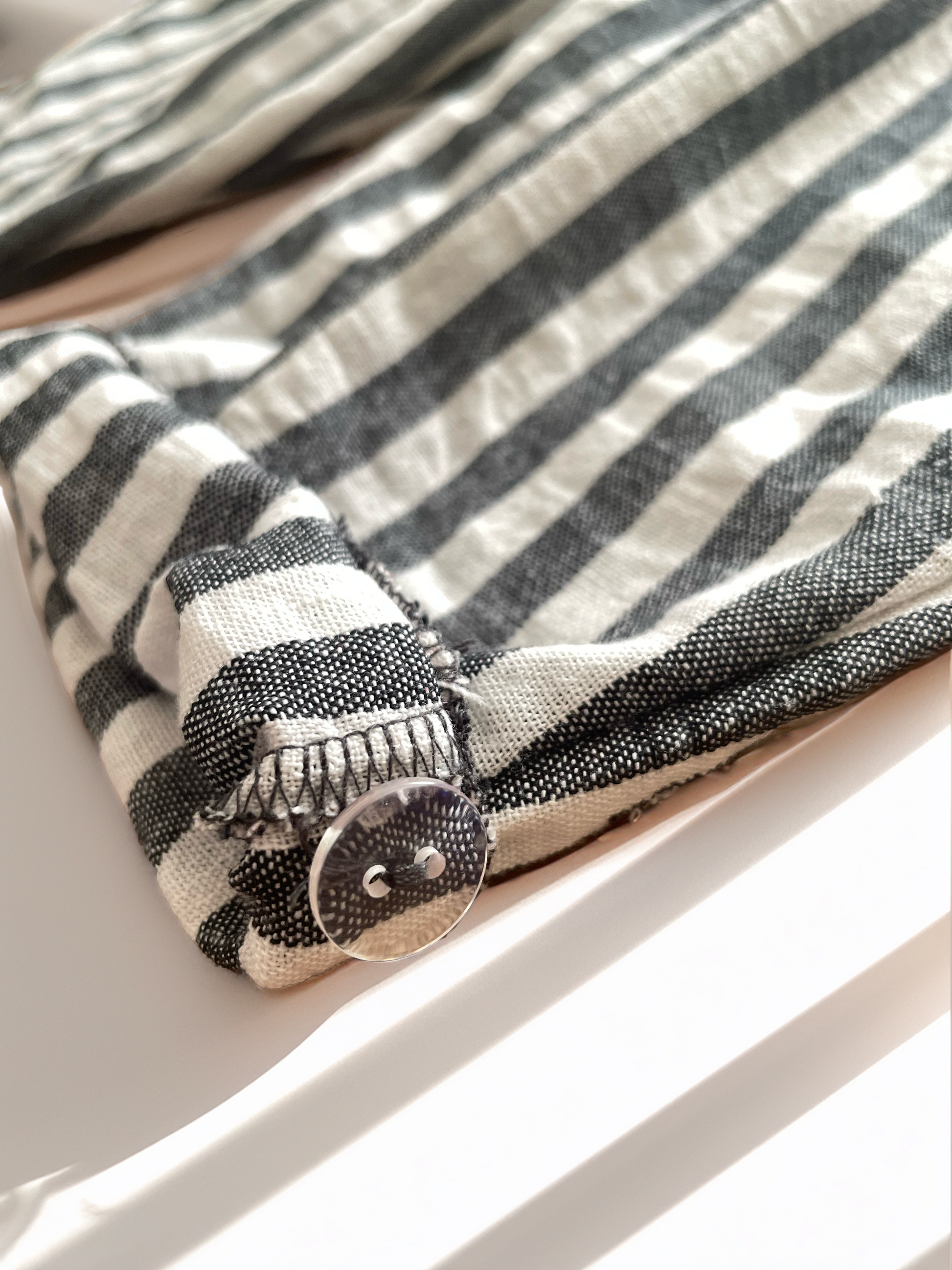 With their relaxed, oversized fit and soft linen texture, these pants are made for movement, memories, and mid-week adventures. Designed with a cuffable hem (buttoned up to shorten, unbuttoned as they grow) and an easy, wide, adjustable cotton drawstring waist, for comfort while adjusting the waist's size.