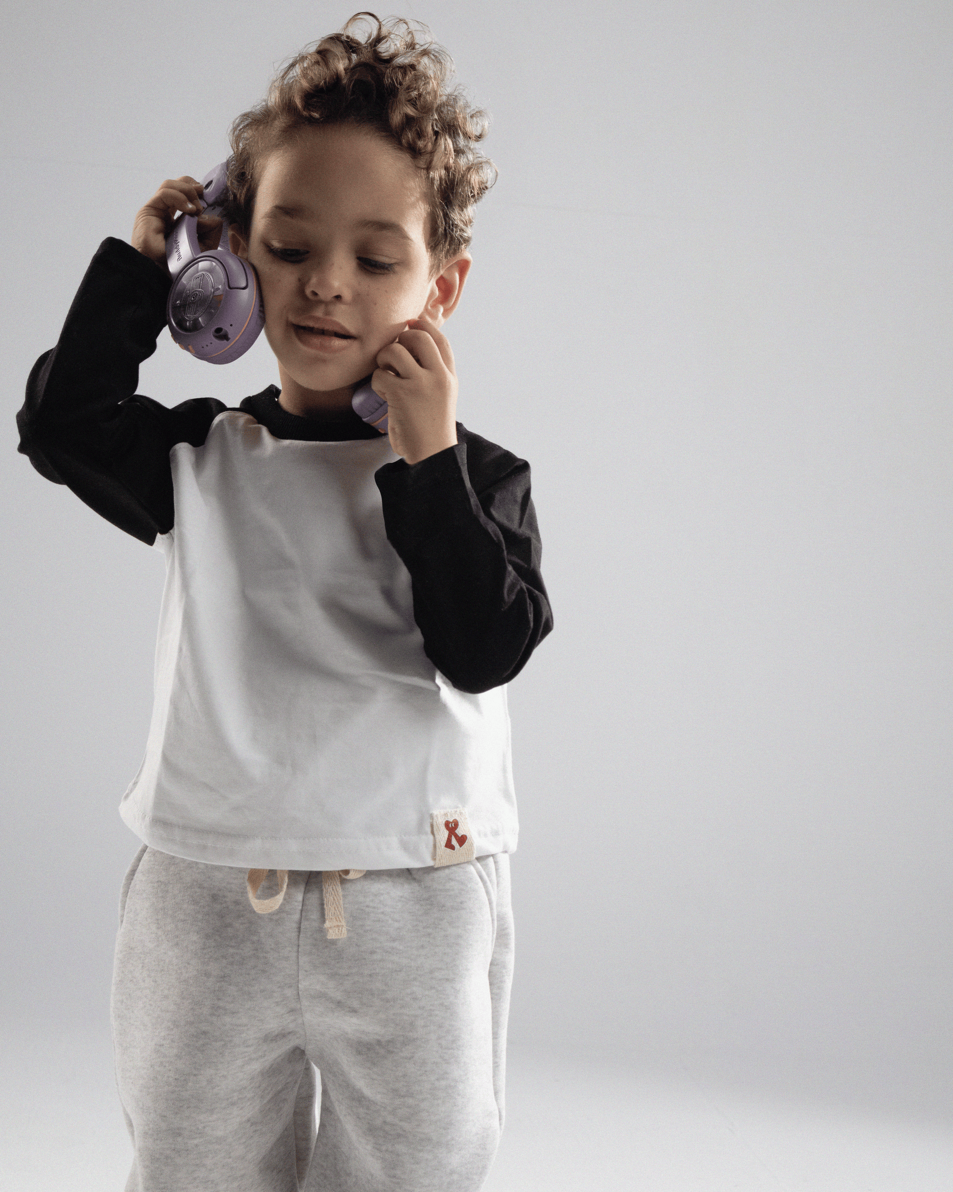 A comfy essential made from 100% cotton with a white body and black sleeves. Soft, breathable, and perfect for layering in any season. Designed with a slightly boxy oversized fit that lasts longer and keeps up with everyday play.